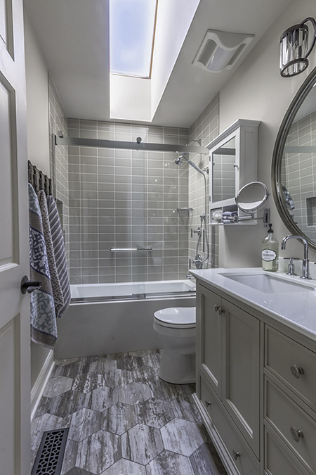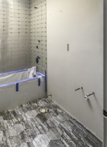 - Roughs in wiring for any new lighting or accessories. We’re seeing some lighted make up mirrors and shaving mirrors as well as medicine cabinets.