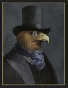 Exhibit A…this first picture. This series is a New Perspective favorite as both Pam and I fell in love with the quirky formality of these eagles. How fun could they be in a home office? Pam was even tempted to put them in her own dining room. Dressed to the nines, these birds don’t take themselves too seriously while bringing rich colors in a space.