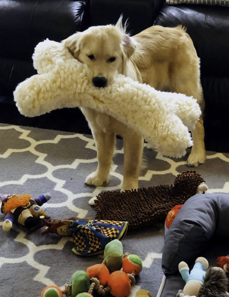 Bromley lives in a high rise in downtown Chicago, so organization options are a top priority. Look for creative ways to store pet toys that blend with your décor rather than the traditional box or basket in the corner of the room (although this is a good option if the container blends with your space), consider a dual duty ottoman with a lid that lifts so you can rest your feet and store the dog toys at the same time.