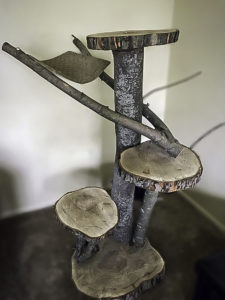 Think about a creative look for the traditional cat tree like this one from Bear and Sheep. This one could add a rustic look tucked into a corner while providing dual duty for people watching.